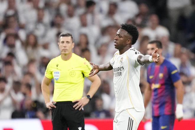 而维尼修斯对于这次换人相当不满,他看到号码牌举的是自己时,一脸难以置信,随后他不满摊手,非常不情愿走向场边,一路喋喋不休。